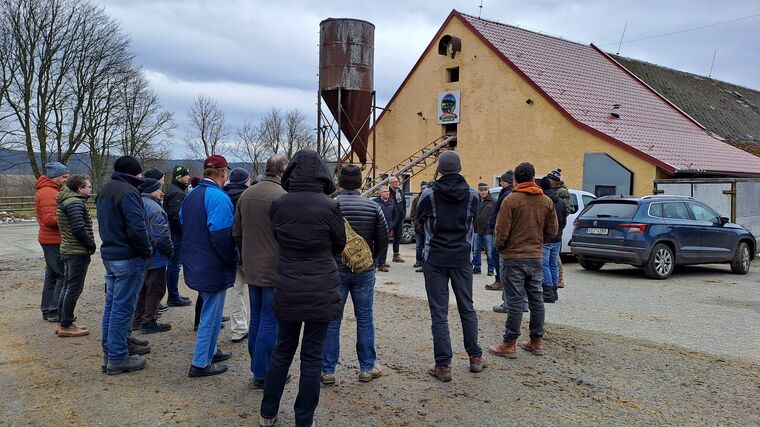 Ani velmi sychravé počasí neodradilo návštěvníky Rady pokračovat v návštěvě farem a z Dyleňské farmy se přemístili na malou Farmu u Sýkorů v obci Velká Hleďsebe. Jiří Sýkora, mimo jiné nový předseda regionální ASZ Západ, je velký zemědělský nadšenec, který svým elánem do práce na farmě zapojuje všechny členy rodiny. Hospodaří na asi 20 hektarech a věnují se chovu mléčného červenostrakatého skotu, chovu masných ovcí, ale na dvorku pobíhá i prase Žofka a u mobilního kurníku hejno slepic. I přestože se jedná o malou farmu, mají i vlastní zpracovnu mléka k výrobě domácích mléčných produktů. Všichni rodinní příslušníci navíc chodí do práce a farmu provozují ve svém volném čase z radosti a nadšení pro práci venku na farmě a s láskou ke svým zvířatům. K obhospodařování pozemků nepoužívají nejmodernější technologie, ale osvědčenou klasiku značky Zetor. Dle slov pana Sýkory by si bohužel ani nemohli zažádat o investiční dotaci právě z důvodu, že farma není jejich hlavní obživou. Bylo by proto skvělé, kdyby nová dotační politika myslela i na sedláky, jako je Farma u Sýkorů, neboť právě takovýchto drobných sedláků bývaly dříve plné vesnice, ale dnes už jich je spíš jako šafránu.