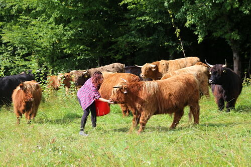 Na farmě je v současné době 90 zvířat, a to jak tohoto plemene, tak i kříženců. „Highland má velmi kvalitní maso s nízkým obsahem tuku a cholesterolu, jemné a chutné. Jeho zmasilost ale není tak vysoká jako u intenzivních plemen kvůli pomalejšímu růstu, zvířata dosahují jatečné hmotnosti až kolem třetího roku věku. Pořídili jsme proto do stáda černého býka plemene aberdeen angus, kterým připouštíme naše jalovice a krávy,“ vysvětluje Ilona.
