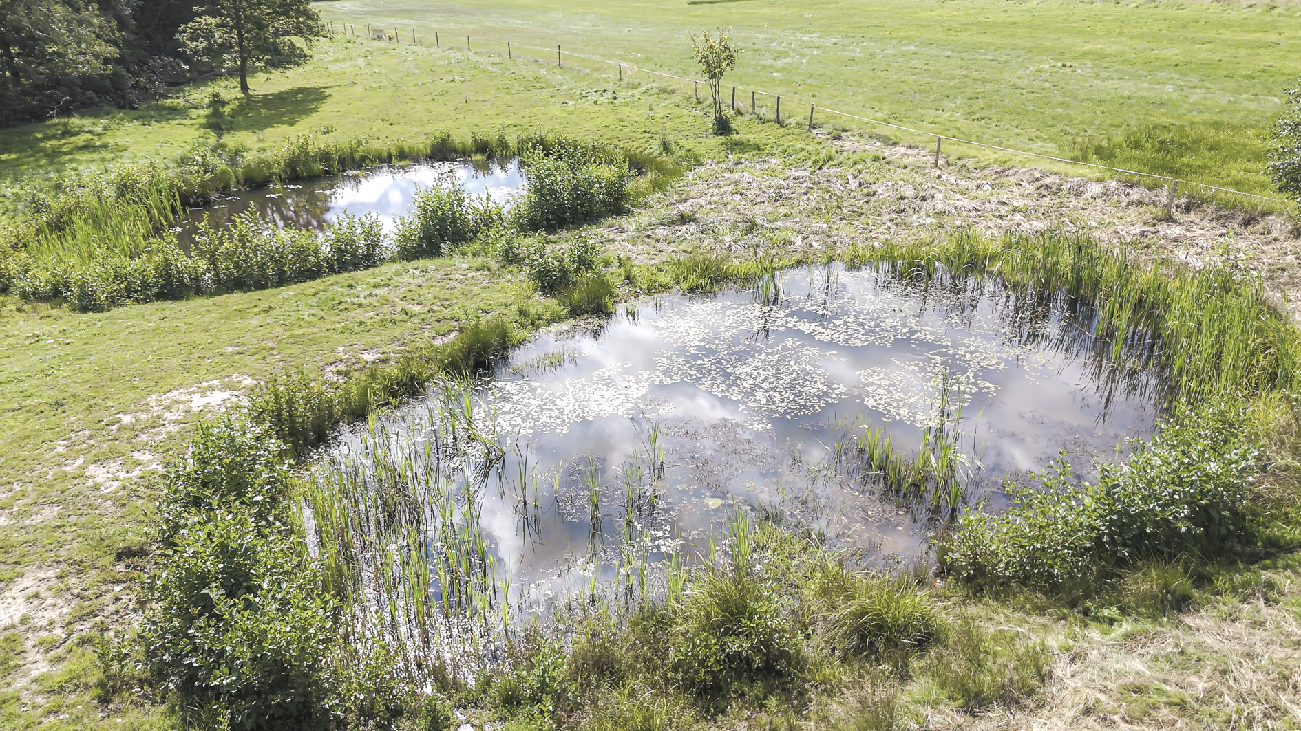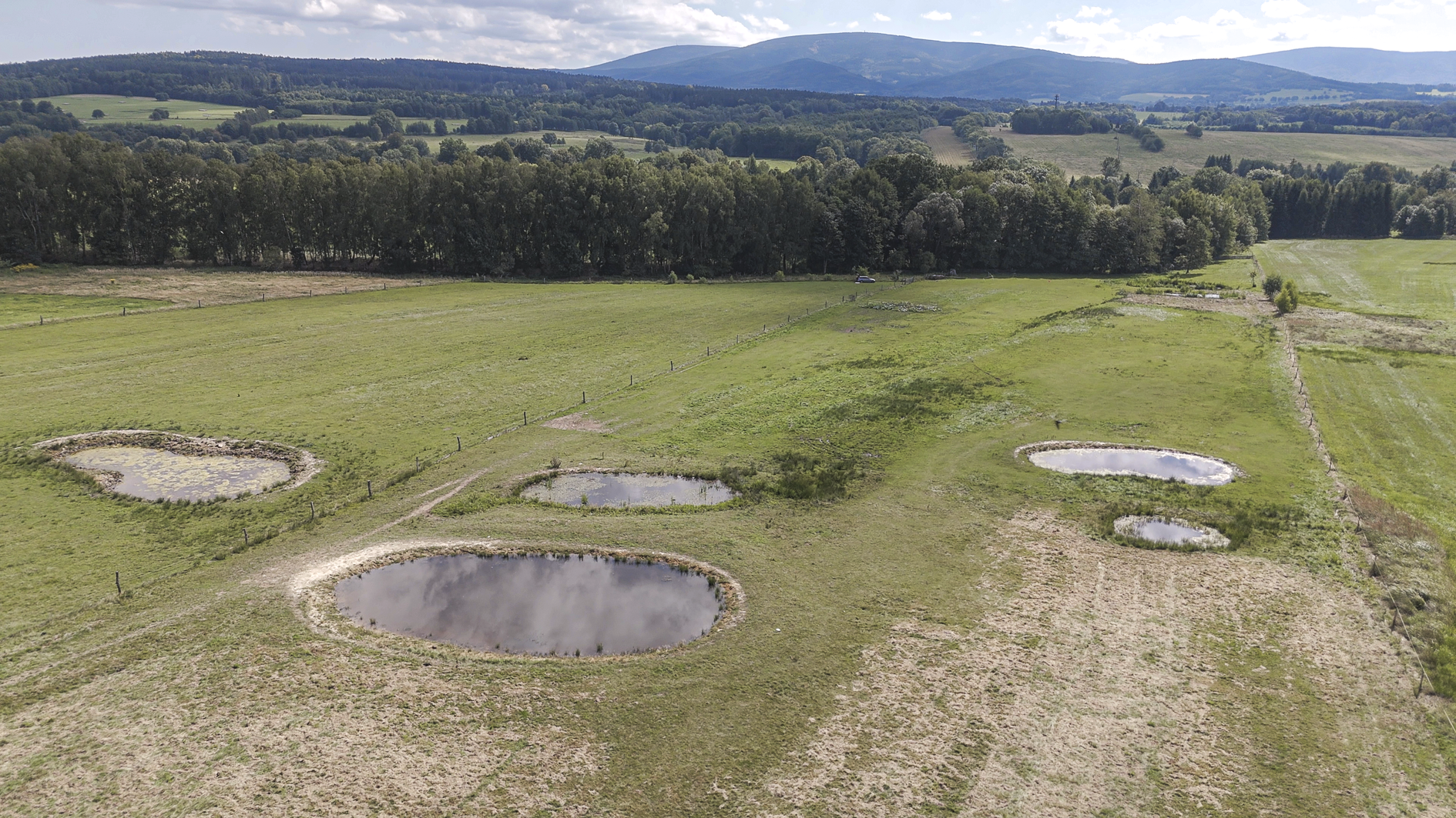 Karel Mařík přikládá velkou důležitost zadržování vody v krajině a s velkým elánem se věnuje obnově pramenů, vytváření hrázek na vodotečích a budování tůní, kterých je na pastvinách již celkem devět. Tůně kypí životem a je v nich možné spatřit například kuňku obecnou, čolka horského, čolka velkého, skokany, vodní hmyz a další. Nezůstalo jen u tůní, ale k zadržení vody a ke zvýšení biodiverzity krajiny vysadil do trvalých travních porostů na jižním svahu tři pásy malých sadů, které slouží jako přerušovací pásy. Zároveň Maříkovi vysazují i další solitérní stromy. Ošetřování travních porostů se provádí mechanicky, bez použití chemických preparátů. Pro přihnojování se používá kompost zpracovaný z hnoje od chovaných hospodářských zvířat.