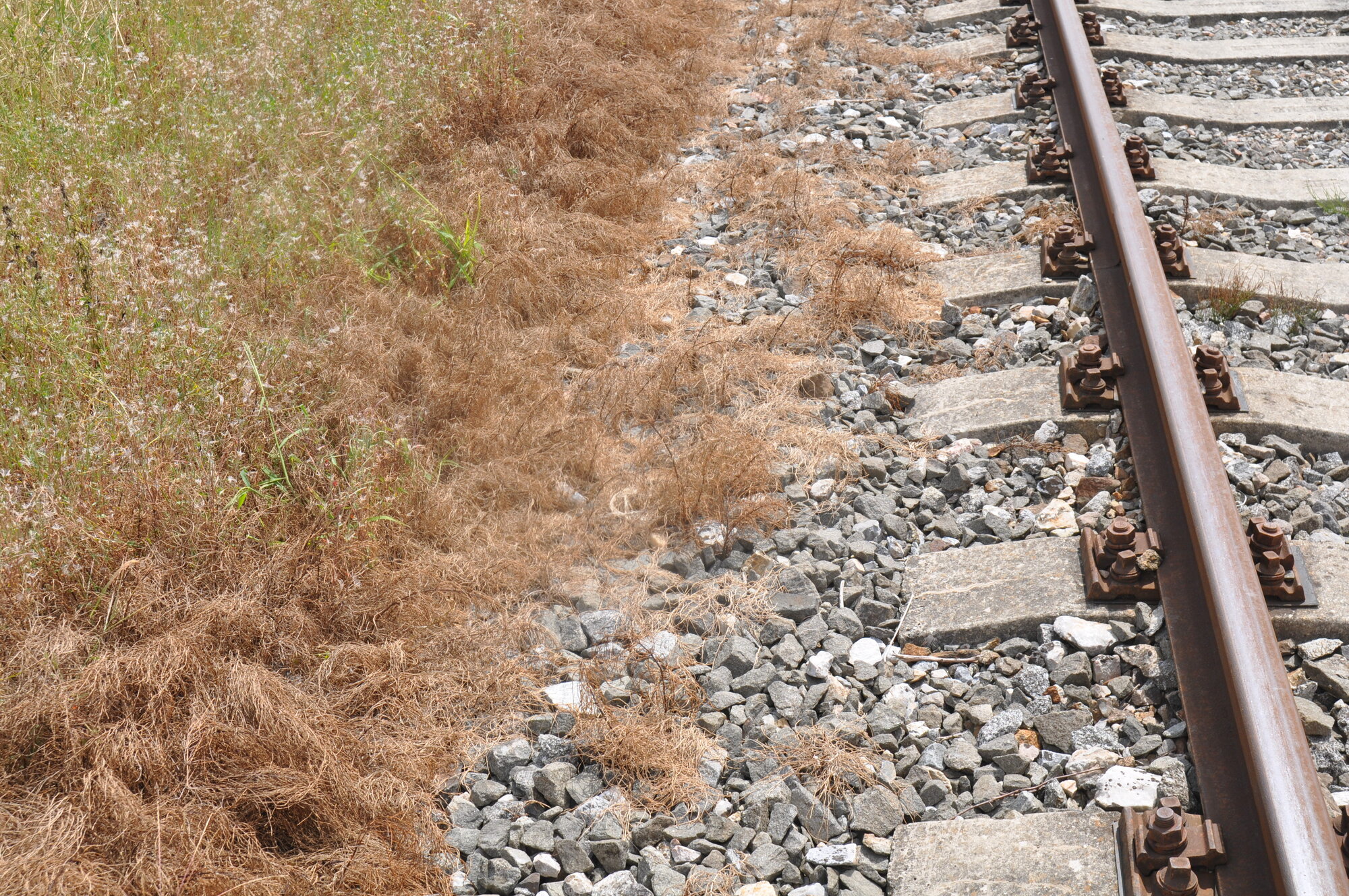 Vzhledem k tomu, že dochází k významnému šíření jak cizokrajných invazních plevelů, tak i běžně se vyskytujících plevelů železniční, ale i pozemní silniční dopravou (dálnice atd.), dochází k následnému šíření plevelů na okolní plochy i zemědělskou půdu. Je proto důležité získat podrobné informace o šíření plevelů. Problémem je i šíření některých rezistentních populací plevelů vůči herbicidům po železnici i podél dálnic a silnic, jako například šíření bytelu metlatého (Kochia scoparia). V minulých letech jsme ve spolupráci s firmou JARO Česká Skalice s.r.o. prováděli vyhodnocení aplikací herbicidů, jejichž požívání je registrováno pro použití na železnici (Roundup, Dikopur). Cílem bylo sledování účinnosti aplikací na různá společenstva plevelných rostlin, která se na železničních svršcích vyskytují. Problémem kromě jednoletých plevelů jsou i plevele vytrvalé, jako například přeslička rolní, která se na železniční svršky šíří z okolních ploch, ale současně se může zpětně šířit do okolí i na zemědělskou půdu. V současné době je poměrně významným problémem šíření prosovitých trav ježatka kuří noha, béry aj. a především z dvouděložných plevelů laskavce ohnutého a laskavce zelenoklasého. Při špatném účinku herbicidů rostliny dozrávají a klasickým způsobem se generativní diaspory plevelů (obilky, nažky) šíří na velké vzdálenosti. To se týká i dalších plevelných druhů, které se na kolejištích vyskytují. Proto se některé plevelné druhy šíří poměrně rychle i do oblastí, kde se dříve nevyskytovaly.