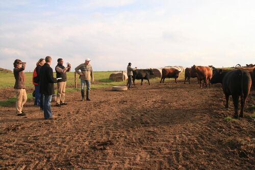Další navštívenou farmou v českokrumlovském regionu byla Angus farma v Rančicích. Zde vzbudili obrovské nadšení plemenní býci i stádo matek plemene Angus. Jedná se o typově naprosto odlišná zvířata, než jsou Afričané zvyklí a zatímco mezi dojnicemi v Chlumečku spolehlivě našli jednu Holštýnku, která se jim oproti ostatním červenostrakatým dojnicím zdála vyhublá, v Rančicích byli udiveni mohutností zvířat.