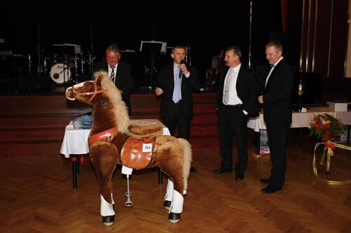 Losování tomboly se tak stalo netrpělivě očekávaným zlatým hřebem večera. Zhostili se ho čestný předseda ASZ Stanislav Němec a Jaroslav Bačina a o řadu vtipných momentů nebyla nouze. Dětskou šlapací čtyřkolku si vyzkoušel přímo na parketu její výherce Josef Žížala z nově založené ASZ Benešov, jízdní kolo provětral tamtéž člen předsednictva ASZ Václav Dašek a další dvě triumfální jízdy účastníky plesu teprve čekaly. Pro tento večer zapůjčil předseda ASZ Praha Jan Miller svého plyšového kolečkového oře, jehož dojel předat výherci speciální ceny – jízdy podél tanečního sálu na tomto koni. Byl jí poctěn asistent 1. náměstka ministra zemědělství Jan Kapička. Hlavní cena – pohár předsedy ASZ Josefa Stehlíka, neputovala tentokrát daleko – na svou farmu do Kozince si ji odvezl Jan Miller.