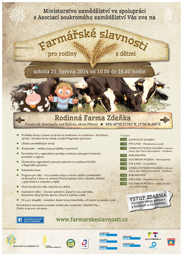 Kromě prohlídky farmy, mnoha druhů hospodářských zvířat a zemědělské techniky bude připraven i celodenní zábavný program pro rodiny s dětmi. Návštěvníci budou mít i možnost nákupu kvalitních produktů od regionálních prodejců.