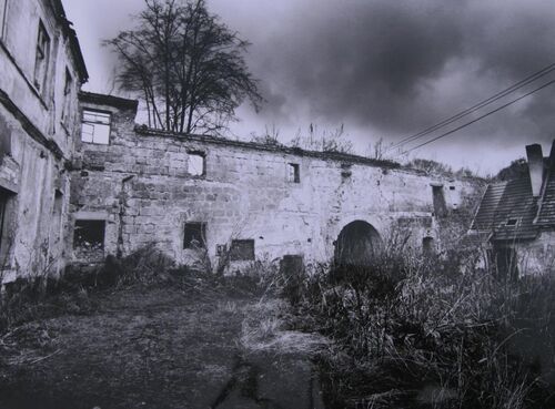 Zbořenina s propadlými stropy, v podstatě pouze obvodové zdi, vše zarostlé kopřivami a náletem – tak vypadal statek zvaný Stranné po téměř čtyřech desítkách let hospodaření JZD Kravaře na počátku devadesátých let.