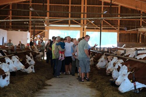 Však také bylo na co se dívat! Jako první měli sedláci možnost prohlédnout si farmu rodiny Bencových v Nových Dvorech. Na ní začal hospodařit hned v roce 1990, jako jeden z prvních v regionu, Jaroslav Benc starší. Před dvanácti lety se k němu přidal syn Jaroslav a společně vybudovali prostornou novou stáj určenou pro chov mléčného skotu, pořídili i dojící automat. Na této moderní mléčné farmě dnes najdete 400 kusů skotu, zejména českých strak, ale i holštýnek. Zhruba 3,5 tis. litrů mléka od 125 dojnic denně odebírá východočeské mlékařské odbytové družstvo, což je dle slov pana Bence staršího při současné krizi na trhu s mlékem jediná cesta, jak situaci ekonomicky zvládnout. Živočišné výrobě je na farmě v Nových Dvorech samozřejmě podřízena i ta rostlinná - kromě průmyslových brambor na 23 hektarech půdy se Bencovi věnují výhradně pěstování krmných plodin na 150 hektarové výměře.