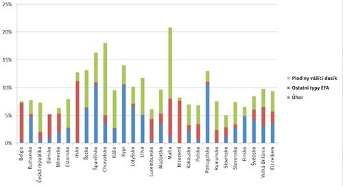 Graf 1 - Podíl využití jednotlivých typů EFA ploch v EU