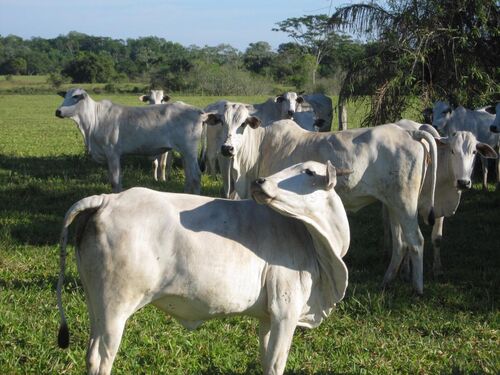 Nelore. Je to bílý, původně indický dobytek. Velké masité kusy.