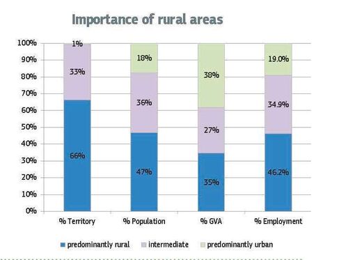 Důležitost venkovského prostoru v maďarské ekonomice ilustruje graf. Zdroj: Evropská komise