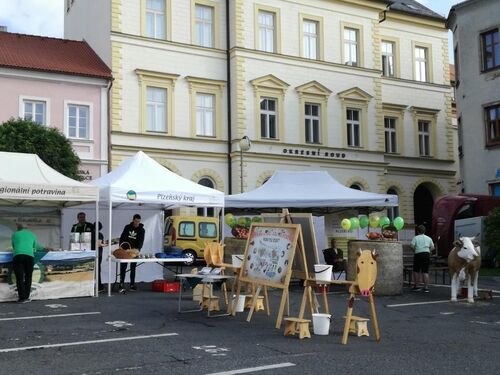 Byl krásný slunný den. Na tachovském náměstí se představila řada prodejců regionálních potravin a některé neziskové organizace. Regionální Asociace soukromého zemědělství se prezentovaly stánkem, v němž byly k dispozici různé propagační materiály - od Selských revuí, přes Farmu roku, Desatero, až po Křížovou cestu českého sedláka.