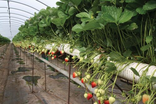 Zatímco dříve sběrači ohýbali k jahodám záda a těšili se, že je odpoledne narovnají u sklizně malin, dnes se jahody pěstují na stolech ve fóliovnících, maliny pak ve speciálních balech rovněž pod krytem. Jako substrát se používá kokosové vlákno, které dobře vede vodu, jež se společně s živinami přesně dávkuje podle stavu rostlin a počasí. Řízení závlahy a hnojení je práce na plný úvazek pro jednoho specializovaného pracovníka. Opylování rostlin zajišťují čmeláci, jež lépe snášejí horko, které v tunelech přes léto panuje. Od loňska také farma rozjela vytápění pro jahody, chystá se i pro maliny – zajistí to ještě lepší rozložení sklizně. K vytápění se používá kotel na biomasu, zatím se spaluje převážně štěpka a rašelina, ale farmář se snaží získat licenci na spalování použitého kokosového substrátu. Pro lepší rozložení sklizně se pracuje také s výběrem odrůd a termínem výsadby. Stáleplodící jahodníky se sází v březnu a plodí s šestitýdenními odstupy až do října, kdy se sazenice zlikvidují. Ostatní odrůdy se vysazují vždy po hektaru s dvoutýdenními odstupy.