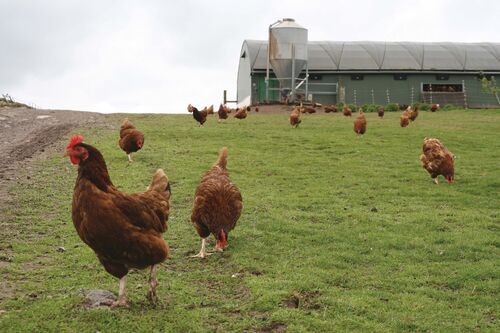 Na farmě nechybějí ani nosnice, na pastvinách je umístěno šest hal po 2 000 nosnicích, denní produkce je tedy cca 11 tisíc vajec. Tak velkou produkci samozřejmě z farmy prodat nelze, takže většina jí putuje do supermarketu. Cena za jedno biovejce se pro zákazníka pohybuje kolem 13 Kč, což je asi o třetinu více než za vejce z klecových chovů.