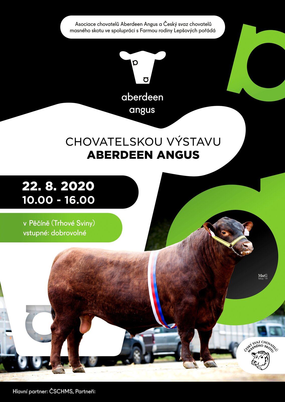 Členové ASZ ČR, a zároveň členové Asociace chovatelů plemene Aberdeen Angus, srdečně zvou širokou chovatelskou a zemědělskou veřejnost na Chovatelskou výstavu plemene Aberdeen Angus, která se bude konat v sobotu 22. 8. 2020. Akce se koná na farmě rodiny Lepšových v Pěčíně u Trhových Svinů v Jihočeském kraji.