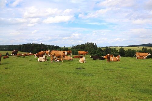 Zdejší hospodářství je jedním z těch, kde vytrvali s chovem mléčného skotu až do dnešních dnů. „Sice nyní část z našich 44 krav připouštíme býkem masným simentálem, s produkcí mléka ale hodláme určitě pokračovat,“ informuje mladý sedlák Vojta.