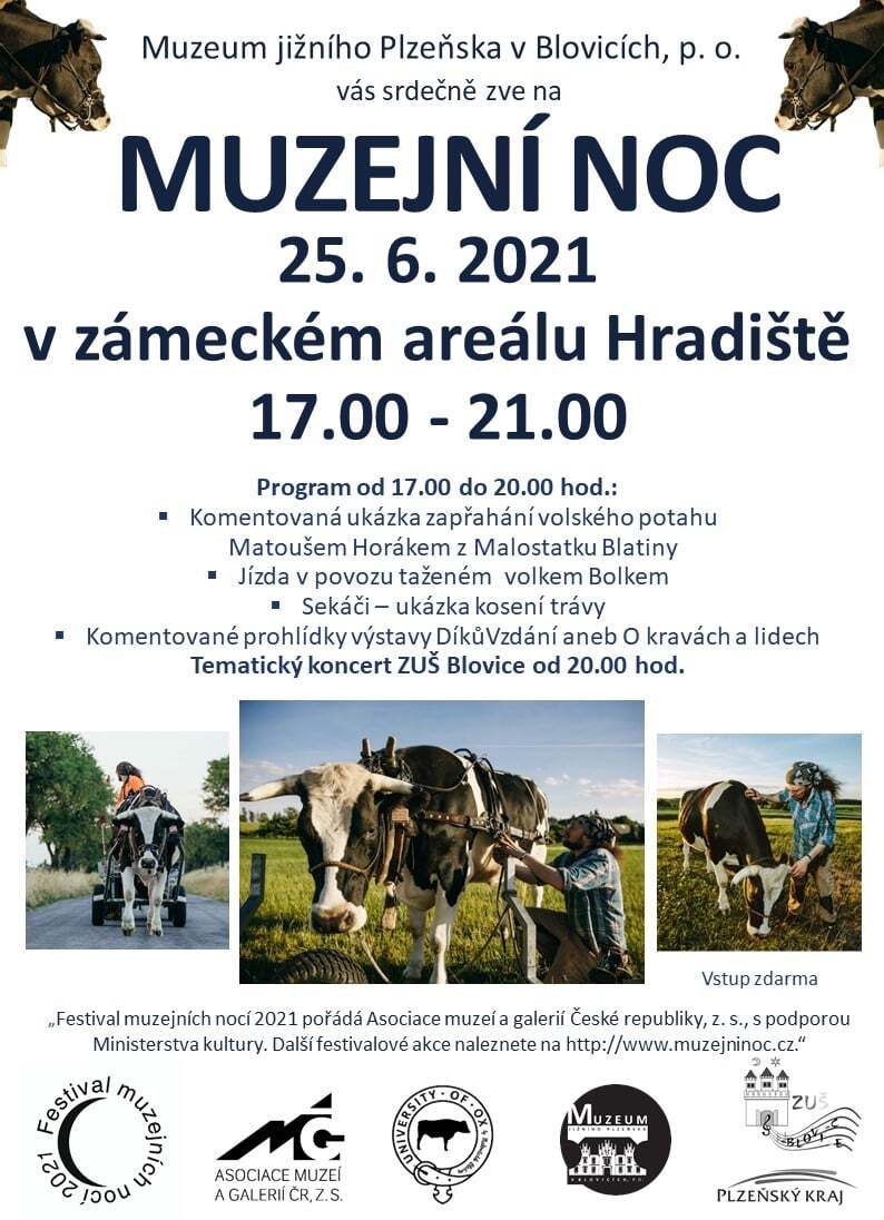 Návštěvníci se kromě textů Matouše Horáka mohou seznámit s tematickými básněmi Václava Hataje – Úslavského a nepřeberným množstvím předmětů vztahujícím se k soužití člověka s domestikovaným skotem ze sbírkového fondu Muzea jižního Plzeňska v Blovicích, p. o, soukromé sbírky Matouše Horáka a sbírky Muzea Českého krasu v Berouně, p. o. Součástí programu Muzejní noci budou komentované prohlídky výstavy, kterou návštěvníky provede její kurátorka PhDr. Radka Křížková Červená.