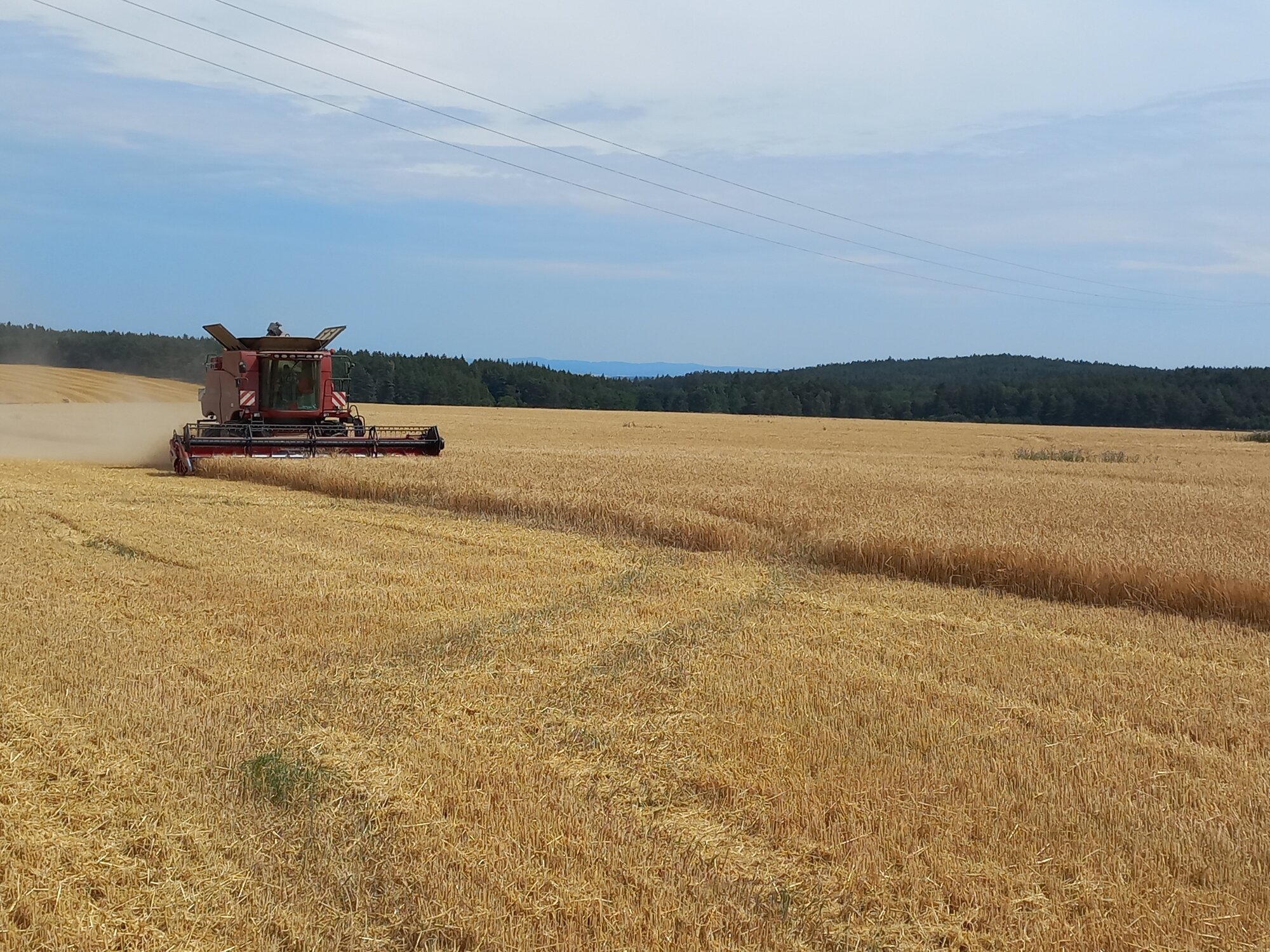 Výnosy hlavních, u nás pěstovaných plodin byly nadprůměrné, a to i přesto, že většina zemědělců se snažila ušetřit na umělých hnojivech, neboť na jaře se navýšila jejich cena až o 300 %, a aplikovali tak nezbytně nutné minimum UH. Celkový letošní úhrn srážek byl ke konci července ± 400 mm (dle stanoviště), což je zhruba o 150 mm méně, než je k tomuto datu u nás obvyklé. Je tedy otázkou, díky čemu bylo dosaženo o tolik vyšších výnosů. Pšenice - běžný letošní výnos - 8 t/ha, lepší pozemky a ošetření - 10 t/ha, ječmen - 7 t/ha, oves - 6 t/ha, řepka - 4 t/ha, mák - 1 t/ha. Taktéž první seče píce na krmení byly dobré, nyní však dochází k zasychání TTP a pastev, což může způsobit některým zemědělcům problém s nedostatkem píce na zimu. Kukuřice, která se zde pěstuje na siláž na krmení dobytka (a bioplynek) vypadá v porostech zatím docela dobře, avšak v některých lokalitách začíná pro nedostatek vláhy zasychat. Tam nezbyde zemědělcům nic jiného, než ji předčasně sklidit, aby dosáhli slušné kvality siláže. Na dobrých plochách letos začne sklizeň kukuřice zhruba o tři týdny dříve, než je zde obvyklé. Brambory v porostech zatím vypadají taktéž dobře, mají nasazeno dostatek hlíz, je tu však nebezpečí, že při nedostatku vláhy nedorostou požadované konzumní velikosti.“